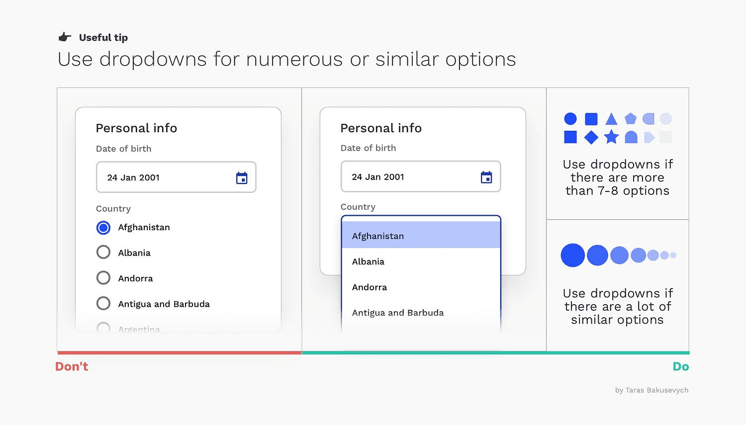 选择控件在用户界面中已经使用了很长时间,这是一个简单的备忘单,您可以按照它为正确的情况选择正确的类型。