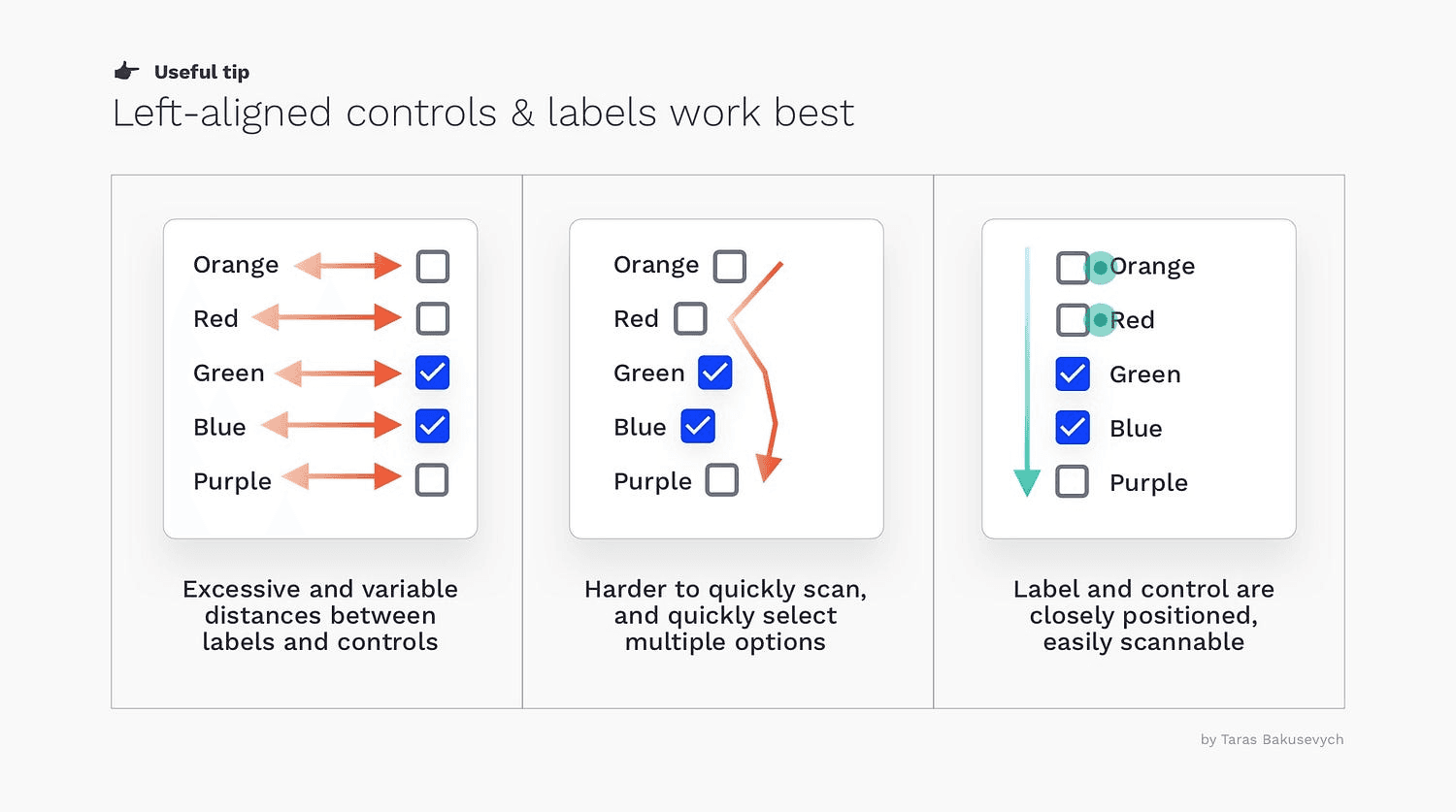 在宽大的可点击/可点击区域中包含按钮和标签。根据菲茨定律,目标的大小起着重要作用。复选框和单选按钮通常很小,很难点击或点击,尤其是在移动设备上。