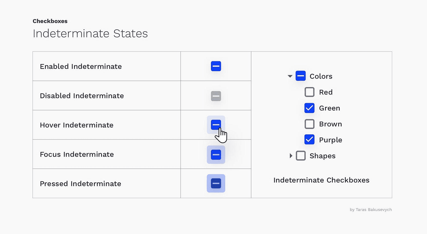 表示既未选中也未选中的复选框。状态尚未完全确定,因此名称 - 不确定。创建用于处理父复选框具有多个子项(其中一些子项已选中,而另一些子项未选中)的情况。